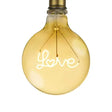 Deze G125 Globe LED lamp met tekst (love) heeft een kelvin waarde van 2100K, dit is een etra warm witte kleur die kan worden vergeleken met kaarslicht of een oranje zonsondergang. Ideaal voor een fijne warme huiselijke en rustgevende sfeer in bijvoorbeeld de woonkamer, slaapkamer, cafe's of restaurants.