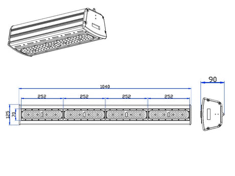 LED Highbay linear 1293mm 250W 150lm/W Sosen Driver Dimmable IP65